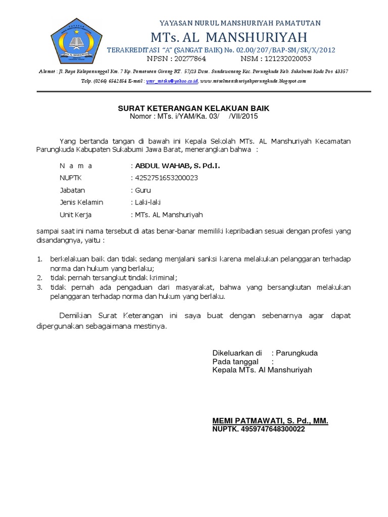 PAUD KB KURNIA BANGSA TEGALCIUT SURAT KETERANGAN AKTIF ... from imgv2-1-f.scribdassets.com Contoh surat keterangan sekolah dalam bahasa inggris. 0185.a/h.06/sma.01.04/mn/2010yang bertanda tangan di bawah ini:n a m a: Surat pernyataan sekolah dapat digunakan untuk berbagai keperluan, seperti surat pernyataan aktif siswa, surat pernyataan aktif guru, surat pernyataan untuk pengantar beasiswa. Isi dari surat pernyataan kebenaran berkas ini diantaranya identitas kepala madrasah/sekolah selaku pembuat, jumlah guru yang memenuhi kriteria untuk menjadi penerima tf, sekaligus pernyataan bahwa telah dilakukan verifikasi dan seleksi berkas serta uji kelayakan. Seperti apa contoh surat pernyataan yang benar? Setelah beberapa waktu lalu kita belajar mengenai contoh surat resmi , dan surat pribadi. Kepala surat berisi judul surat pernyataan, kamu bisa menuliskan dengan kalimat surat pernyataan atau untuk lebih jelasnya, kamu bisa menambahkan surat pernyataan jenis apa yang kamu tuliskan surat pernyataan jual beli tanah beserta rumah. Surat pernyataan dari kepala sekolah.